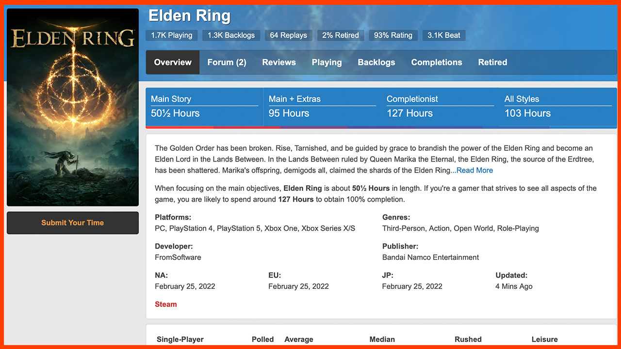 Bilgisayar, konsol ve mobil oyunlar konusunda oldukça zorlamae yarayabilecek olan bu site, forum da dahil olmak üzere birçok hizmet sunuyor. Ayrıca, bir oyunu bitirdikten sonra; kendi oynanış ayrıntılarını How Long To Beat’e girerek istatistiklerden kurtulmasını sağlayabilir ve diğer oyunculara da paylaşımda bulunabilirsiniz.