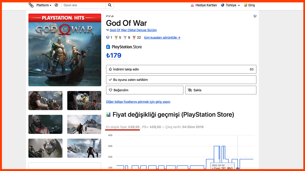 Bir PlayStation kullanıcısıysanız ve satın almak istediğiniz oyunların doğum dönemlerindeki fiyatlarını takip etmek istiyorsanız, PSPrices tam olarak aradığınız adres diyor. Satın almak istediğiniz oyunu en son ne zaman indirime girdiğini ve bu zamana kadar en düşük kaç TL’ye indiğine kadar gösteren site, bütçenizi planlamanıza oldukça yardımcı olabilir.