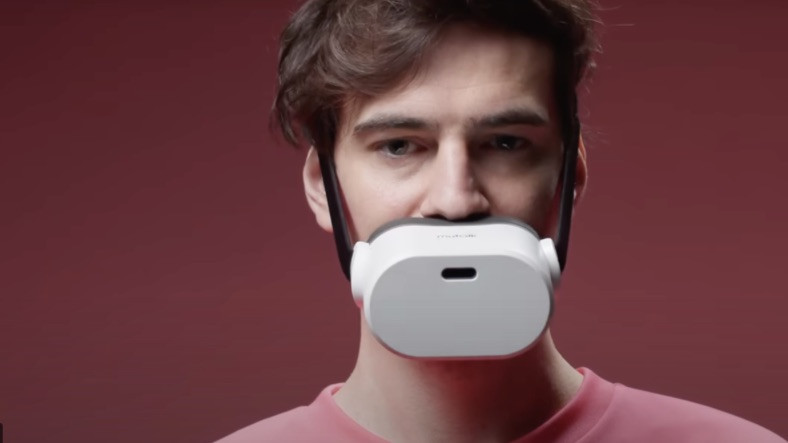 Shiftall isimli bir şirket tarafından üretilen ürün adı “karşılıklı“. VR gözlüklere benzer bir yapıya sahip olan ürün, ağız bölümü takılıyor ve takıldığında, ortaya garip bir görüntü çıkıyor. Şirket bu ürünü tasarlarken oldukça kapsamlı bir neden düşünmüş: Konuşurken çevreyi rahatsız etmemek. Ancak bunun için ağzımıza tehlikeli köpekler için zorunlu olan ağızlık gibi bir ürün takmanın mantığı var mı? Buna pek emin olmayacağız…