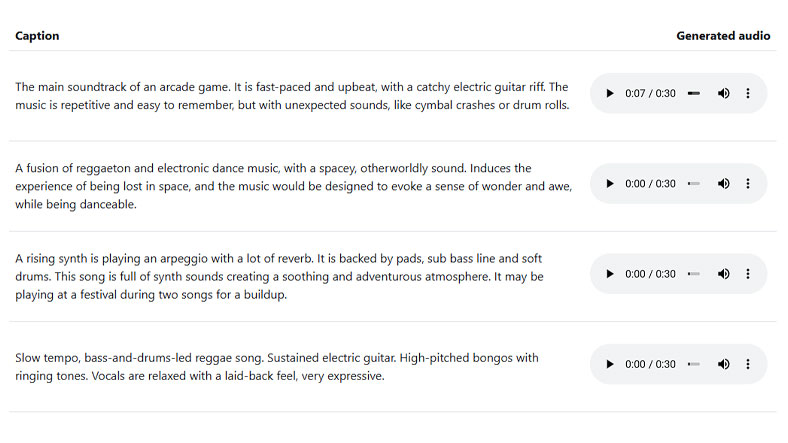 MusicLM’in Github görünümü, Google AI ekibi tarafından yapay zekâya hazırlatılmış bazı örneklerini görüyorsunuz. Henüz geliştirmediklerini yapay zeka bazı sesleri net veremese de üretilen seslerin hi-fi yani yüksek yükte olduğunu belirtelim. Ayrıca bu yapay zekâyı ChatGPT ile birleştirerek çok daha ayrıntılı ve özgün müziklerin de hazırlanabileceği belirtiliyor.