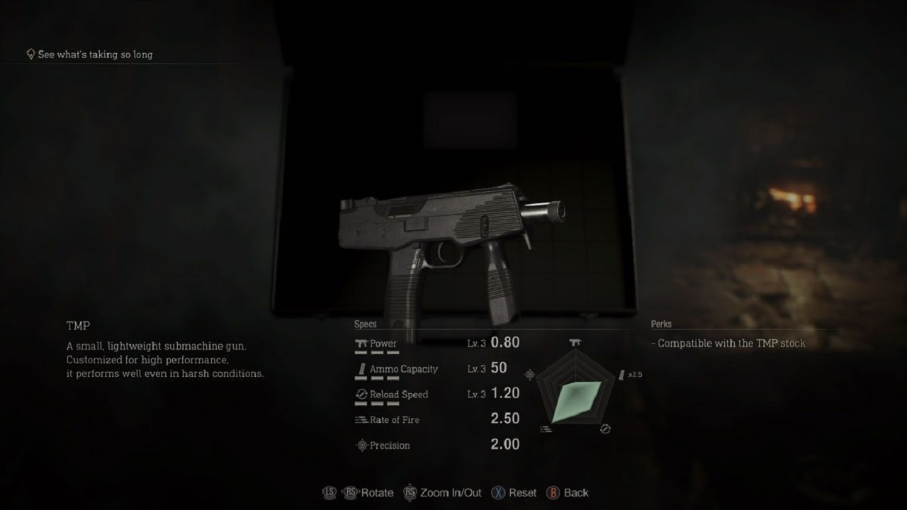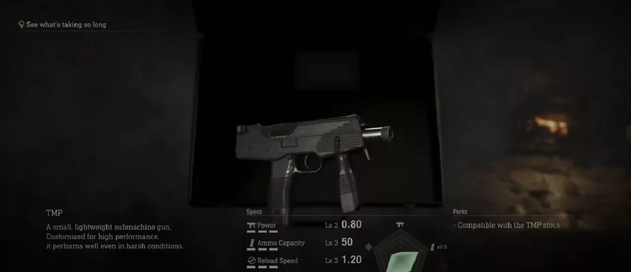 Oyuncular, Resident Evil 4 Remake demo sürümünde, orijinal oyunun başladığı yere gidiyor. Ancak bu kez işler biraz değiştirilmiş görünüyor. Bu demoda yeni düşman boyutu, oynanış özellikleri ve köy için biraz revize edilmiş. Ancak Resident Evil 4 demo sürümünde bilinen bu düzene ek olarak gizli bir silah var. TMP, Resident Evil 4 demo sürümünde yer alıyor. Ama oraya ulaşmak için bir odadaki sandığı açmaktan veya doğru kapıyı itmekten biraz daha fazla uğraşmak gerekiyor.